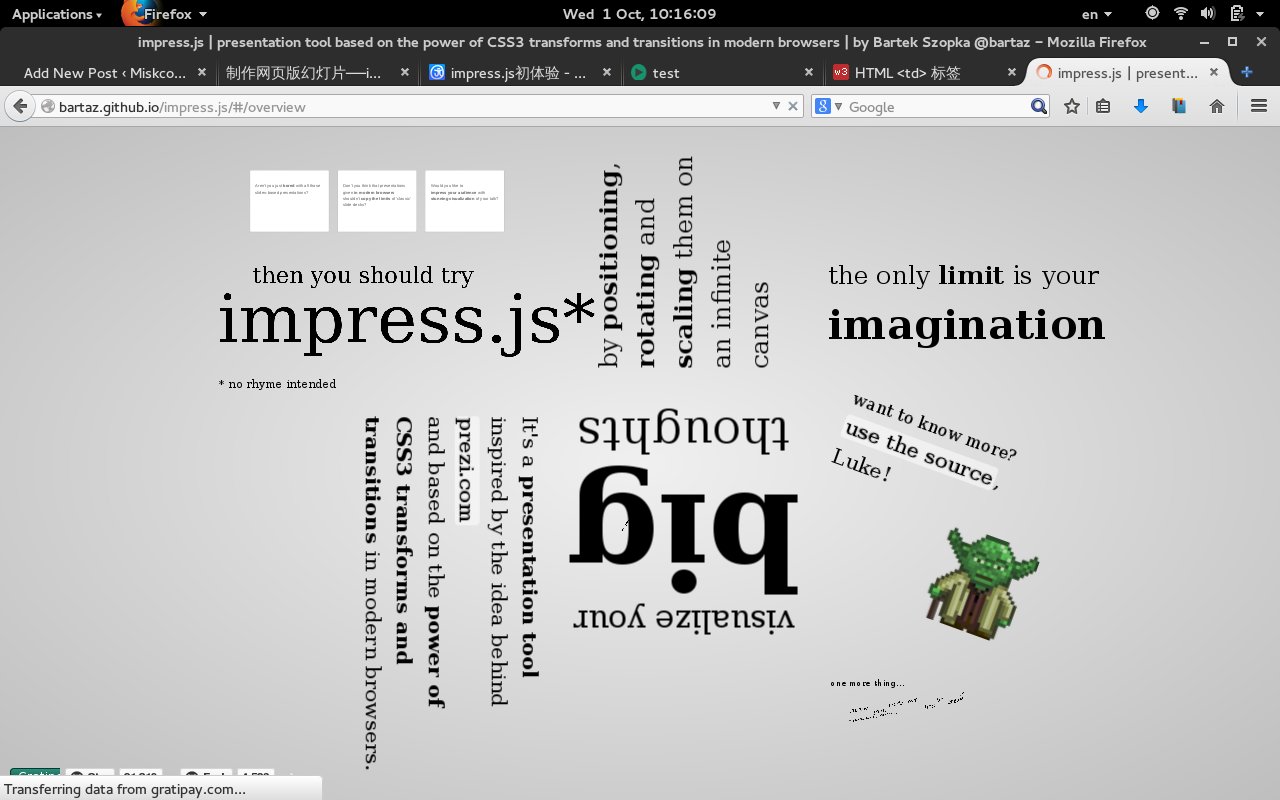 等不及了?那么,我们现在就来制作一个 impress.js 幻灯片