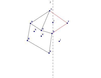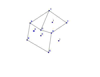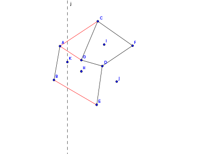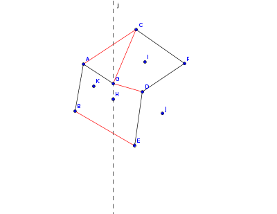 这个点找完交点后,$CG$ 和 $GD$ 两条线段交点相同,但是我们发现,斜率更小的更接近 $H$,因此,如果交点相同就按照斜率寻找,然后继续找 $I$ 和 $J$