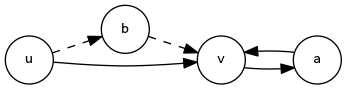 我们会发现不合法的情况本质上是走了一次像 $v \rightarrow a \rightarrow v$ 这样的路径,再加上一个三元环