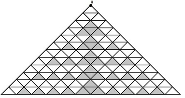Solution:首先第 $1$ 层是最特殊的,因为这里没有灰色的三角形,然后注意到灰色的部分把整个金字塔分成了左部和右部